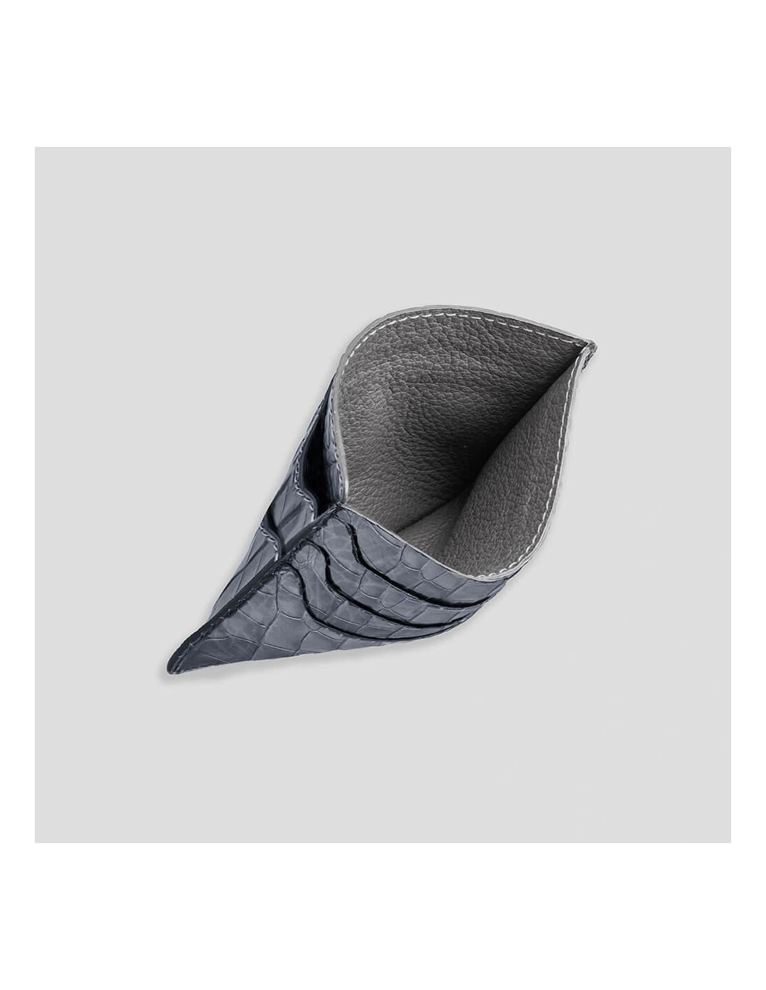 This expansive cardholder accommodates up to 5 cards, including business cards, alongside cash and compact documents. It features a central compartment designed for more substantial items or coins, which is enveloped in supple Italian leather. Crafted from the finest genuine alligator leather, this cardholder is meticulously hand-stitched by skilled artisans in Italiy.