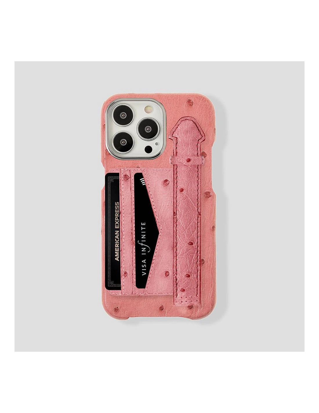 iPhone 16 Pro Cardholder Finger Strap Case Ostrich