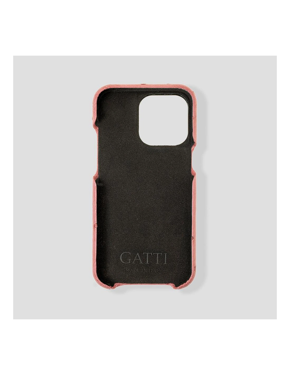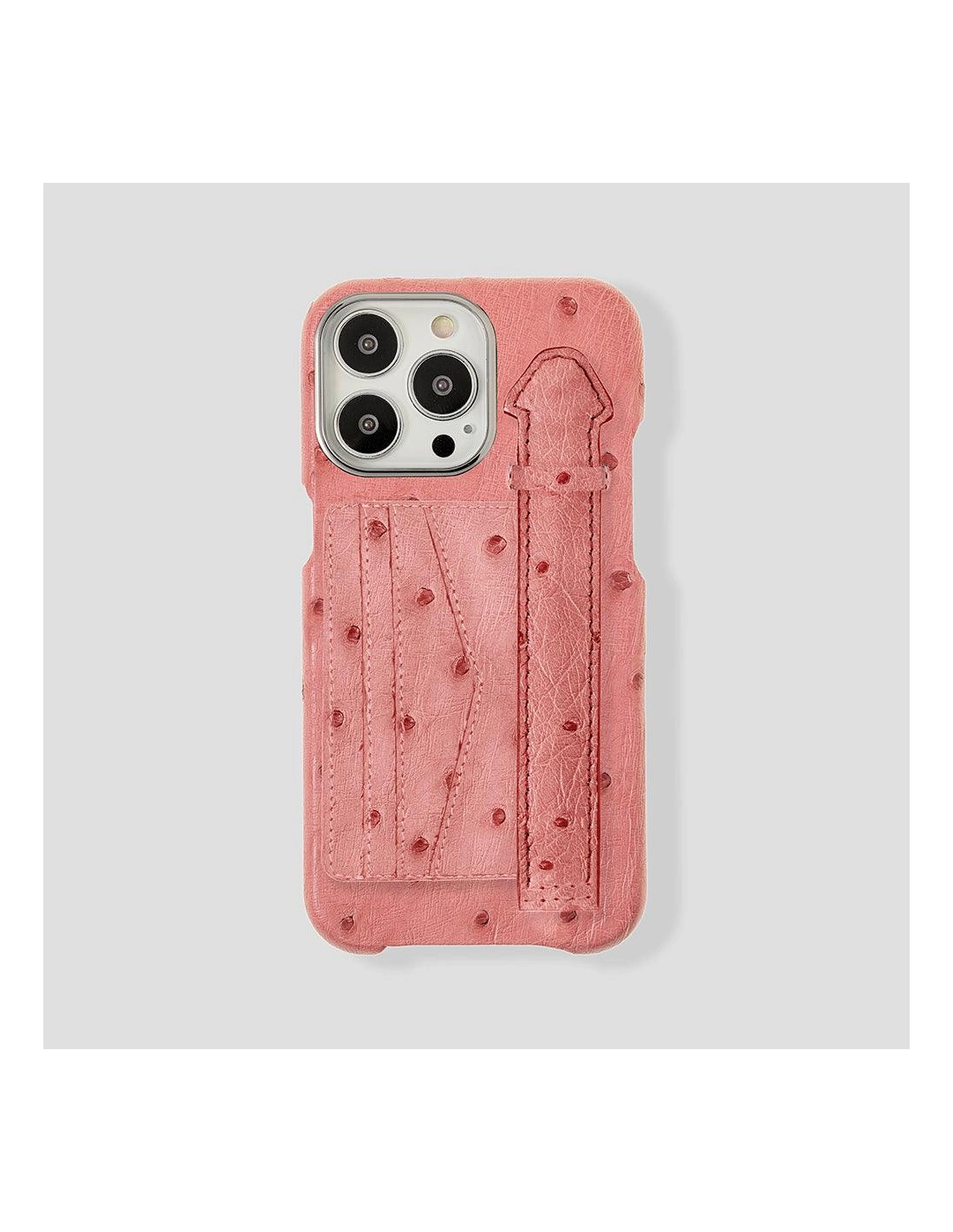 Gatti LuxuryiPhone 16 Pro Cardholder Finger Strap Case Ostrich with Strap in supreme genuine ostrich leather is a convenient and luxe everyday accessory with 3 credits card and ID pocket. All our cases are made by applying the leather through the thermoforming techni